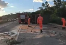 Carreta tomba, provoca vazamento de óleo e mobiliza equipes de resgate na BR-494