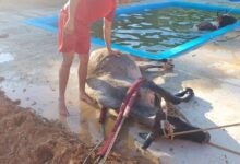 Bombeiros resgatam vacas presas em piscina na zona rural de Campo Belo