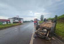 Carro capota na MG-050 e motorista escapa com ferimentos leves em Formiga