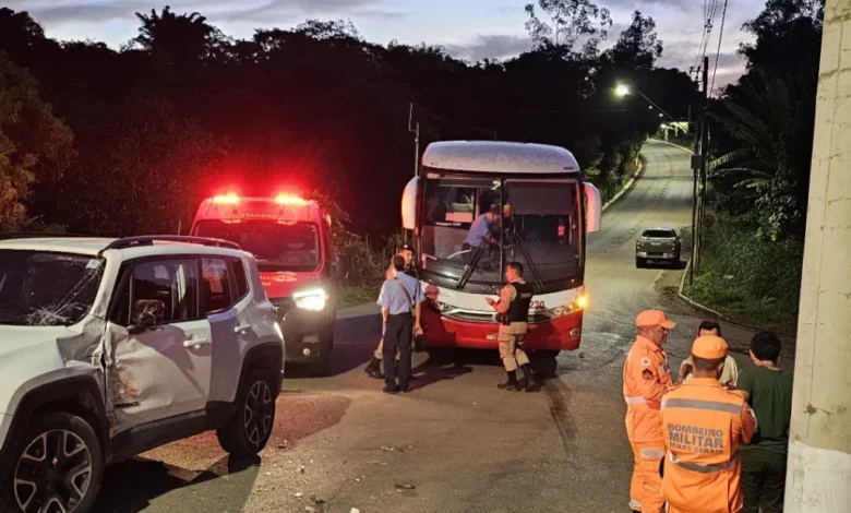 O Corpo de Bombeiros Militar de Minas Gerais foi acionado na tarde de sábado (18) para atender um acidente envolvendo um carro de passeio e um ônibus na região do Morro do Ferro, em Oliveira.