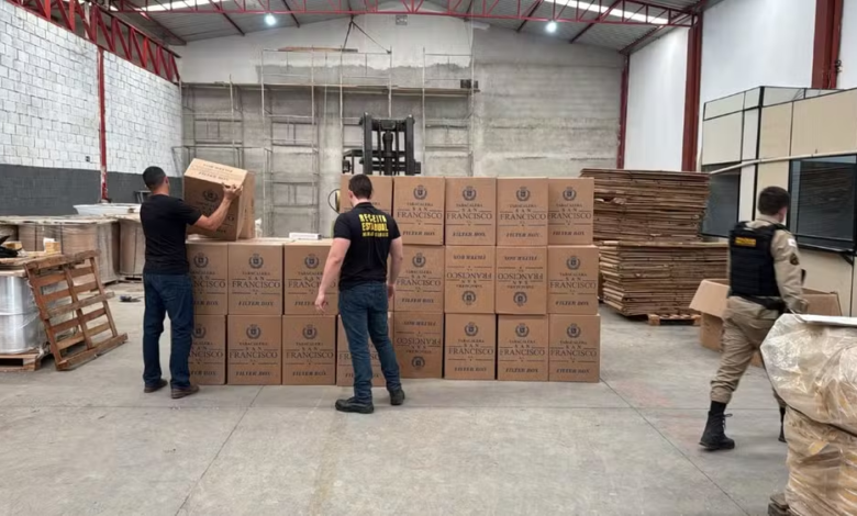 Na manhã desta quinta-feira (3), uma operação conjunta das forças de segurança resultou na apreensão de aproximadamente 1,7 milhão de maços de cigarros em um galpão localizado na cidade de Nova Serrana. A suspeita é de que os produtos seriam comercializados de forma irregular.