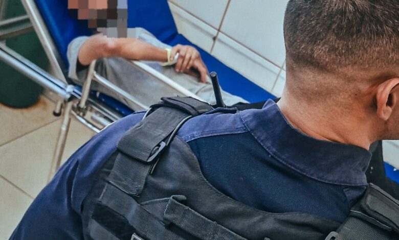 O suspeito foi preso no local, recebeu atendimento médico e, em seguida, foi encaminhado à Delegacia de Polícia Civil.