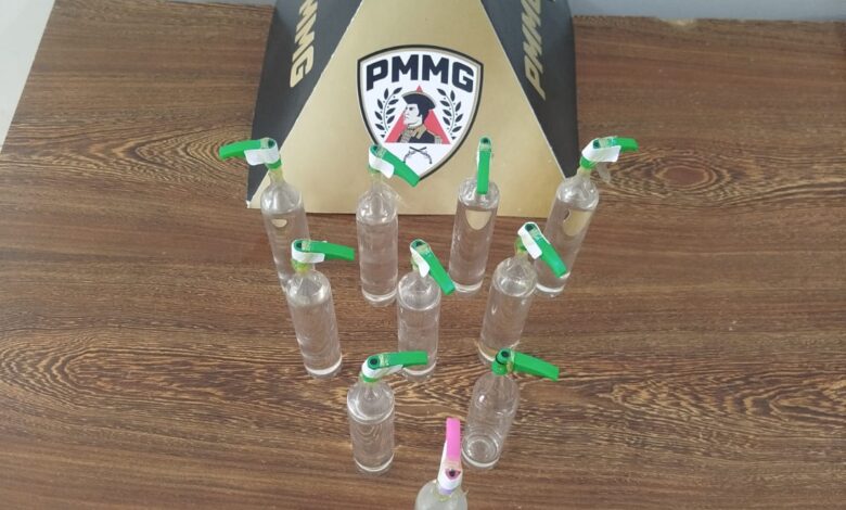 Dando continuidade à ocorrência, os policiais foram até a residência do homem em Divinópolis, onde foram encontrados mais sete frascos da substância.