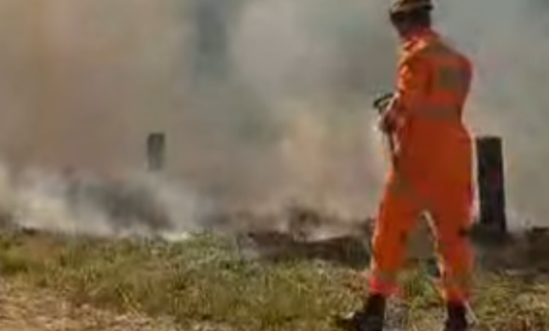 Incêndio às margens da rodovia mobiliza bombeiros e ameaça vegetação